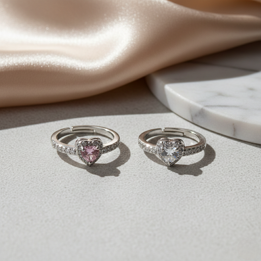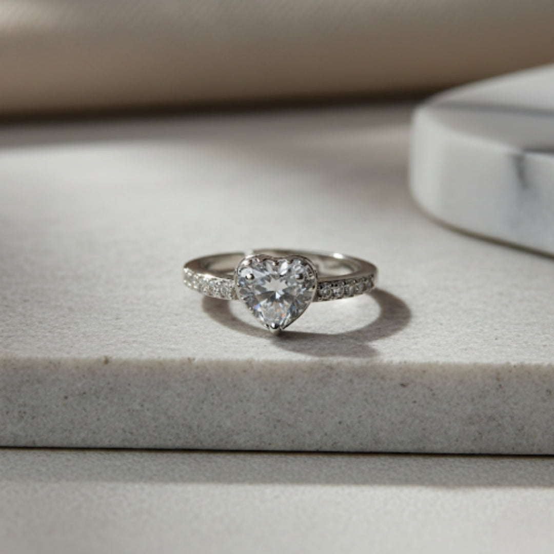 Produzido em aço inoxidável, este anel ajustável com pedra de zircão em formato de coração está disponível em duas cores: rosa e branco. Com brilho intenso e acabamento delicado, ele une elegância e muito charme para complementar qualquer loo
