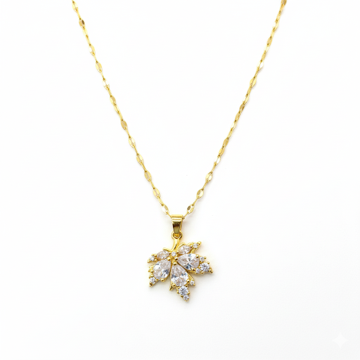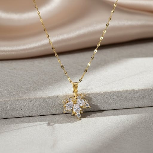 Este colar em aço inoxidável na cor dourada traz um pingente inspirado em uma folha de Bordo, com detalhes delicados que realçam sua elegância. Resistente, leve e cheio de charme, é a peça ideal para quem ama acessórios que combinam natureza e sofisticação.